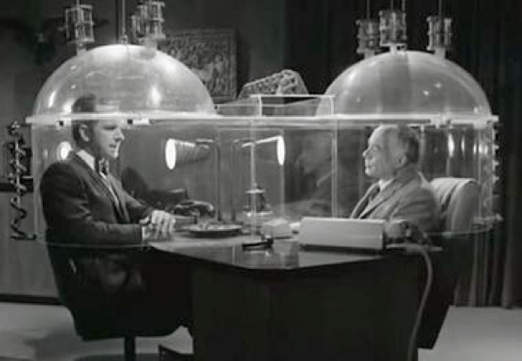 For anyone over the age of 50, Get Smart was a favorite TV program in the U.S. It was certainly one of mine. One of the many Bond-esque spy-gadgets it employed for comic effect (let’s not forget the Shoe-Phone) was a device they called the “cone of silence”, a plastic shield that lowered from above, encapsulating the speakers, insuring they would not be heard. We, too, had a cone of silence in Dune.